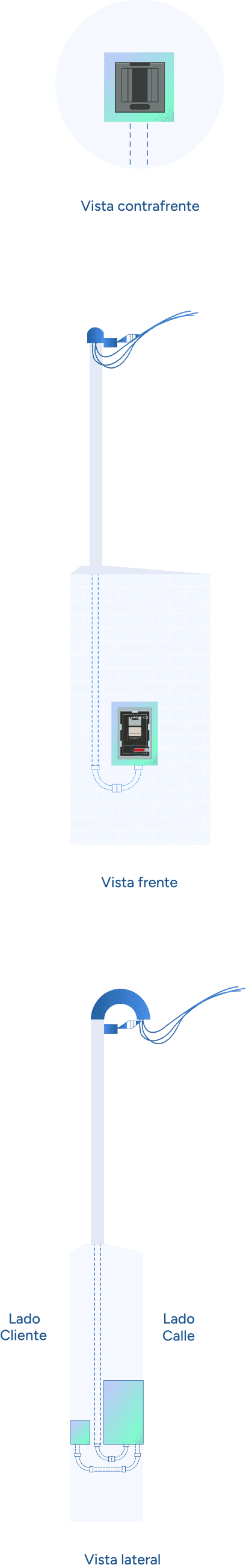 Si en el lugar donde vas a alojar el medidor ya existen otros medidores, se considera agrupado. Por lo tanto, deberás adecuar las instalaciones de acuerdo con alguno de los siguientes esquemas: